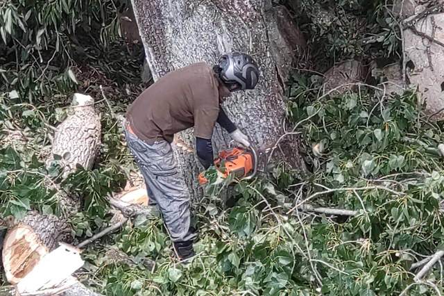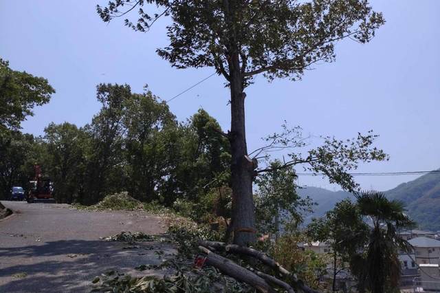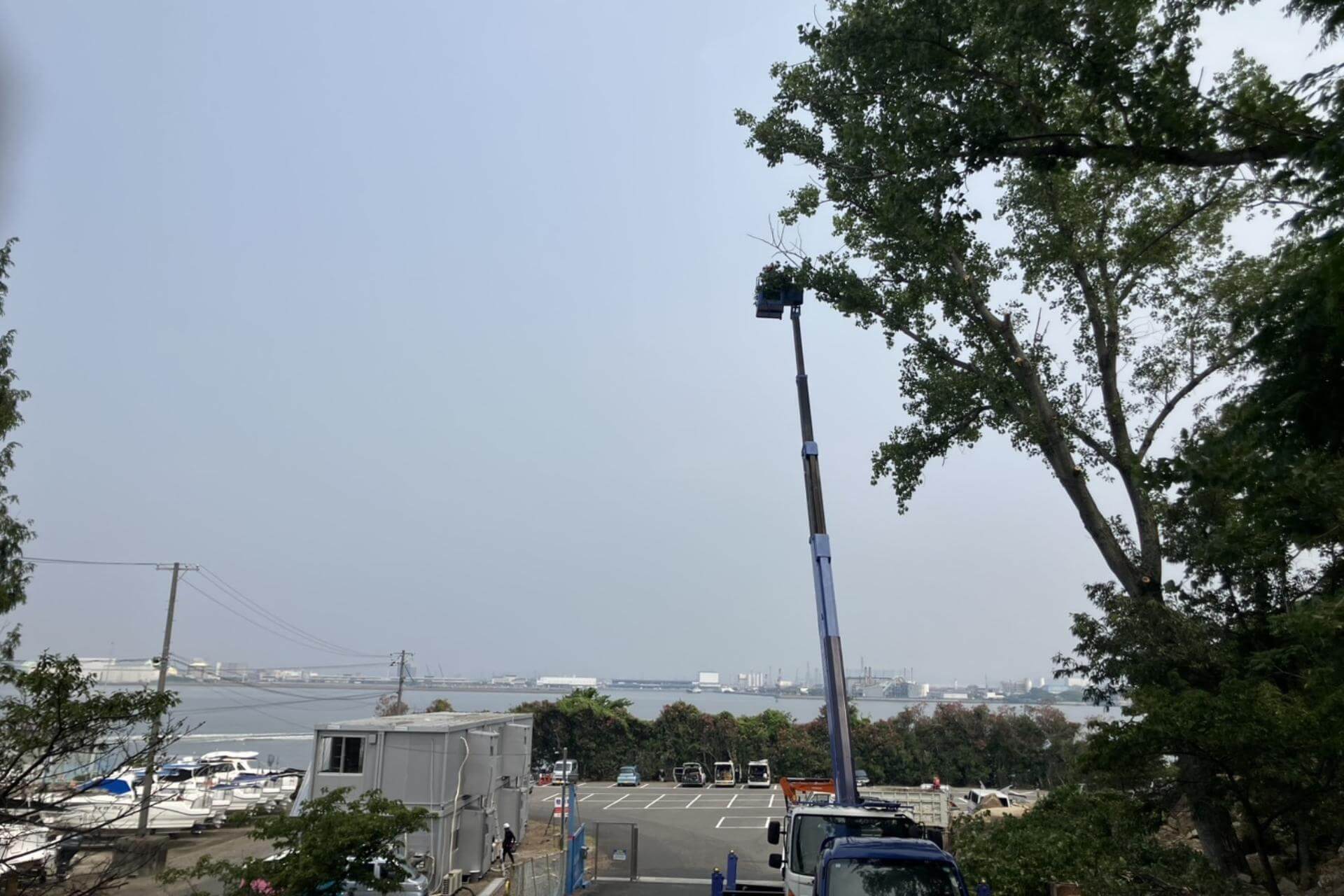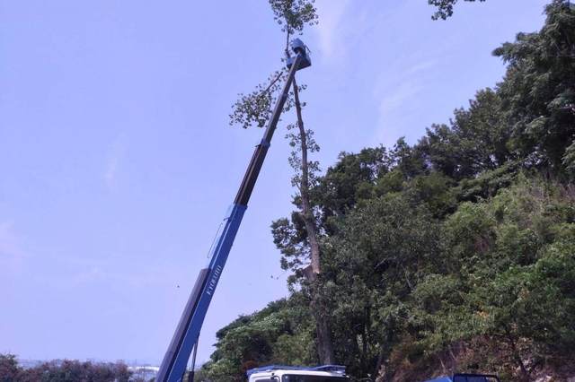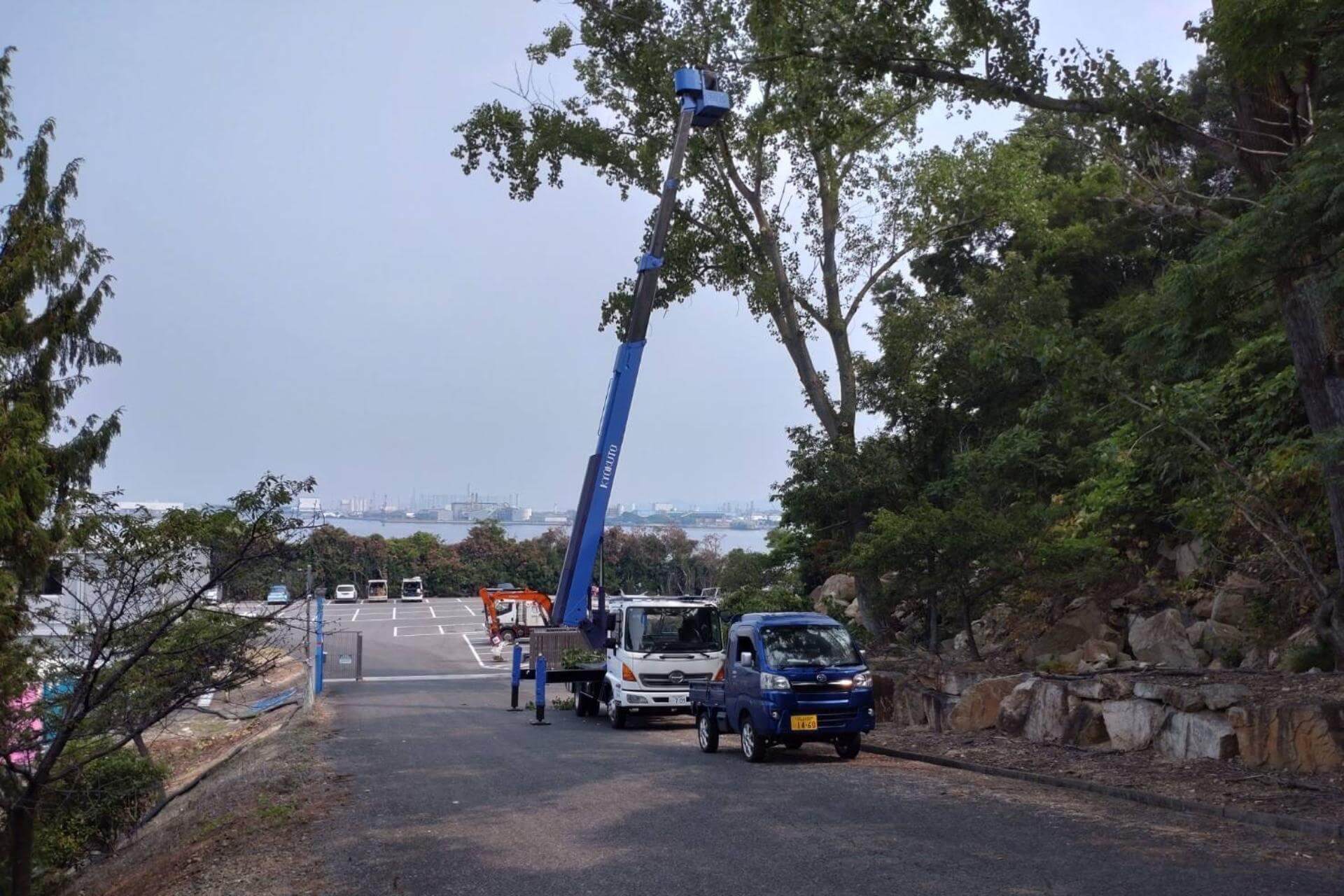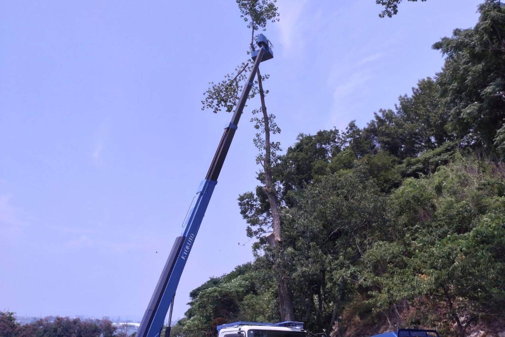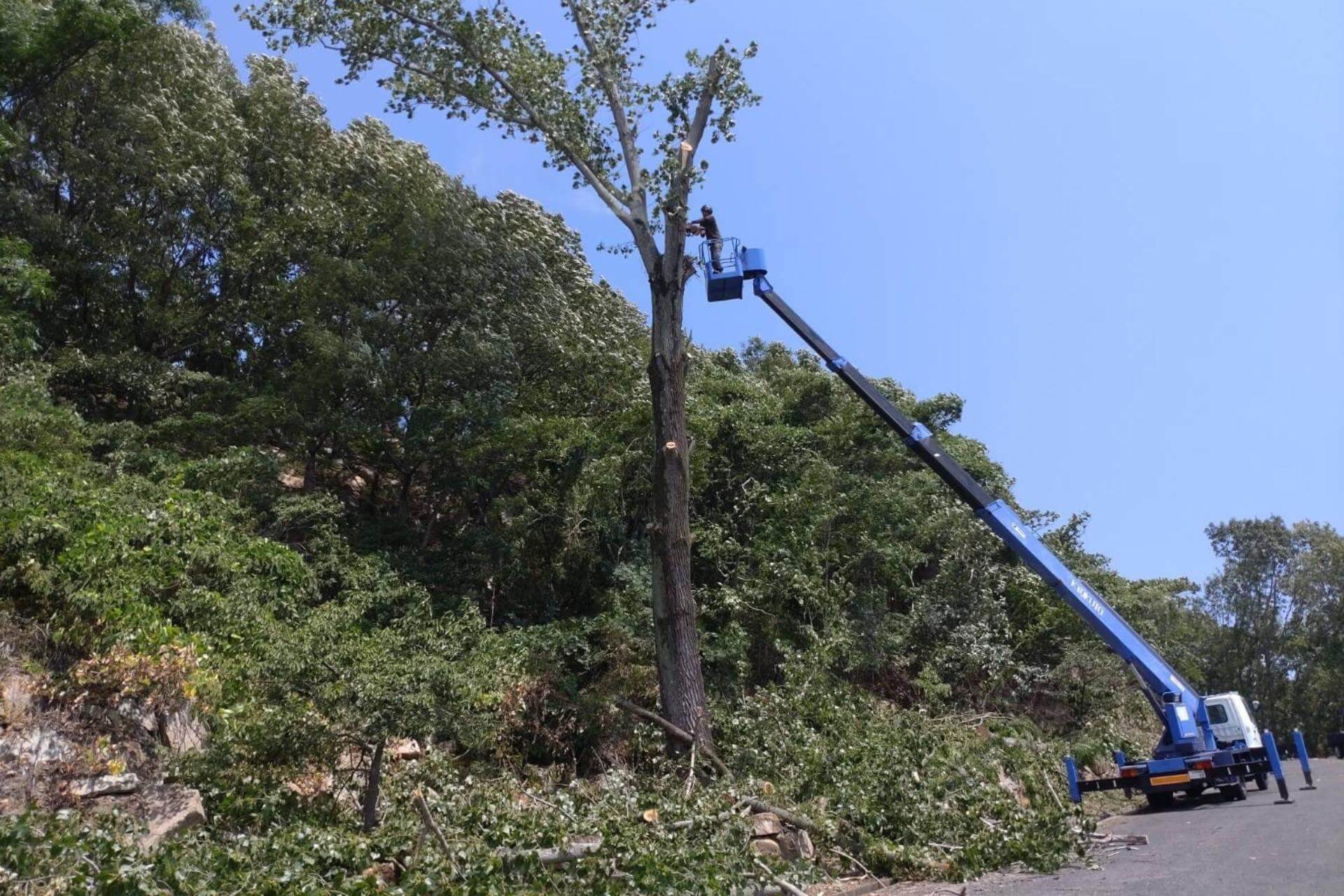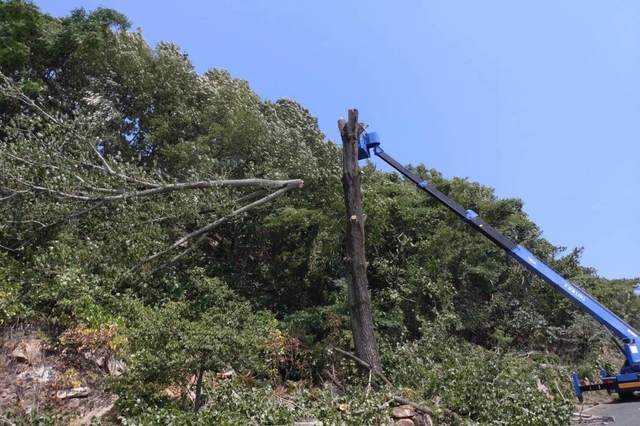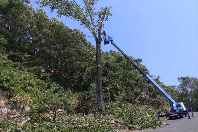 高所作業車27m 人力伐採