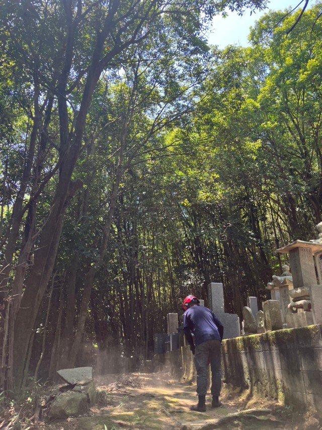 鴨方地内にて墓地被り枝を除去しました。