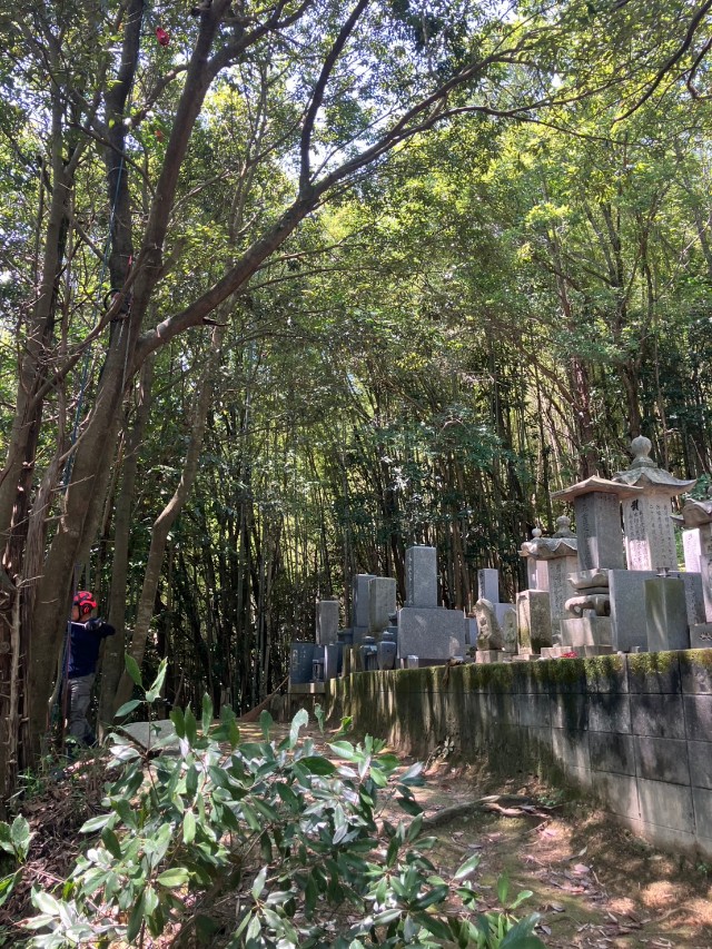鴨方地内 墓地被り枝除去1本 人力高所